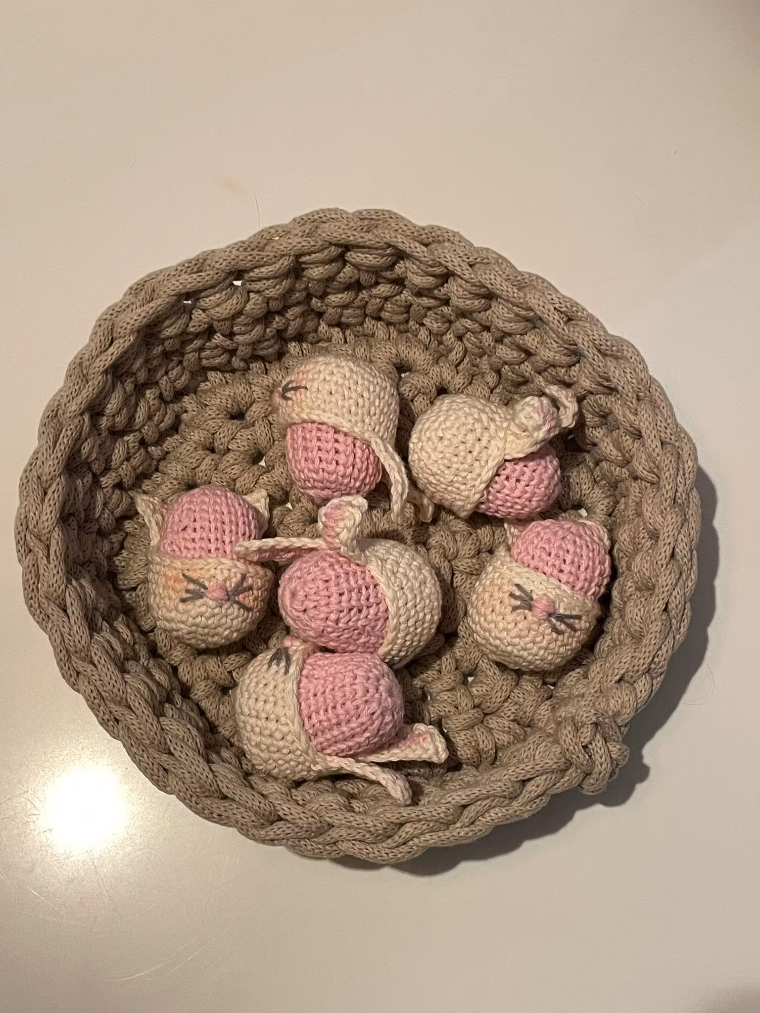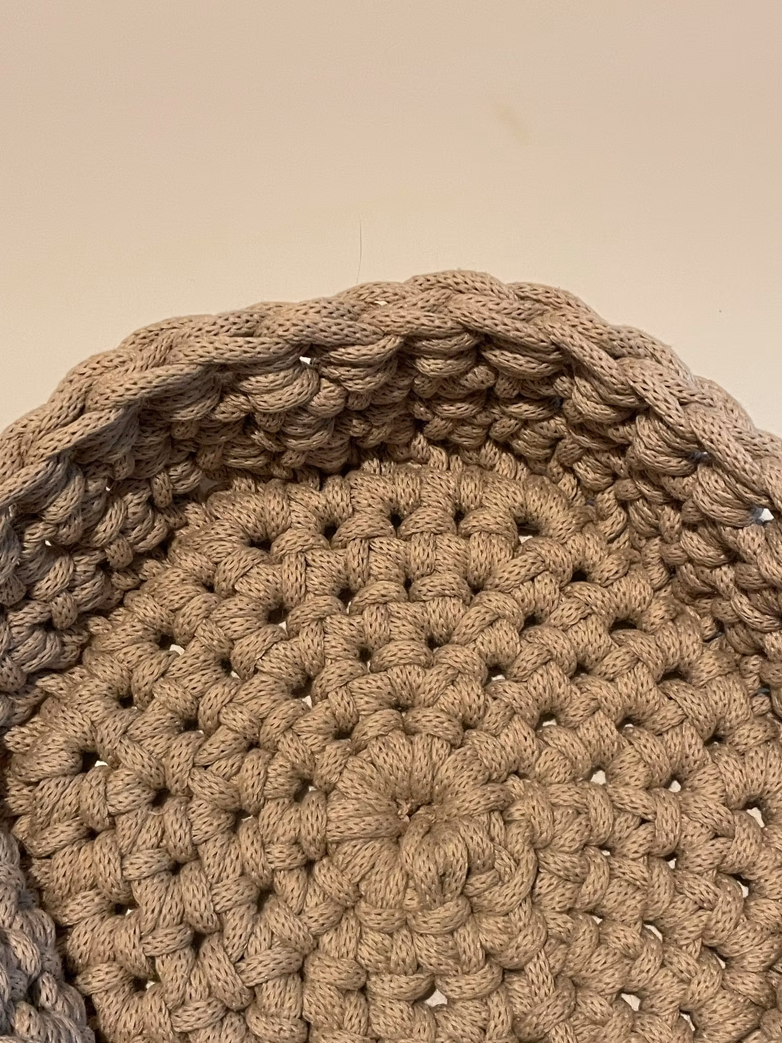 Stor låg virkad korg 399 kr Produkten är tyvärr slut i lager. :( Beskrivning En virkad korg i 80% bomull- 20 % polyestergarn. Stadig och hållbar, rymmer det mesta, till exempel små kaninägg.