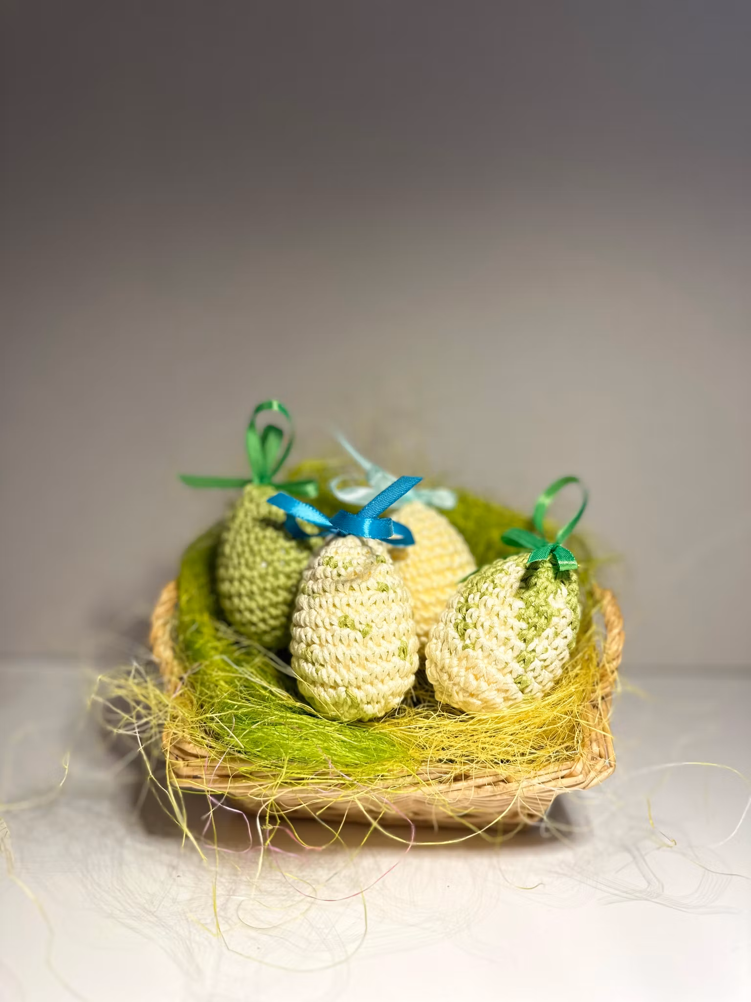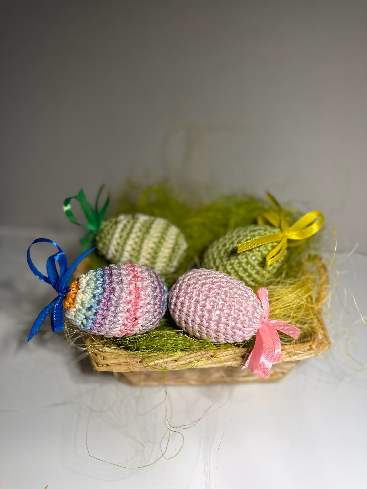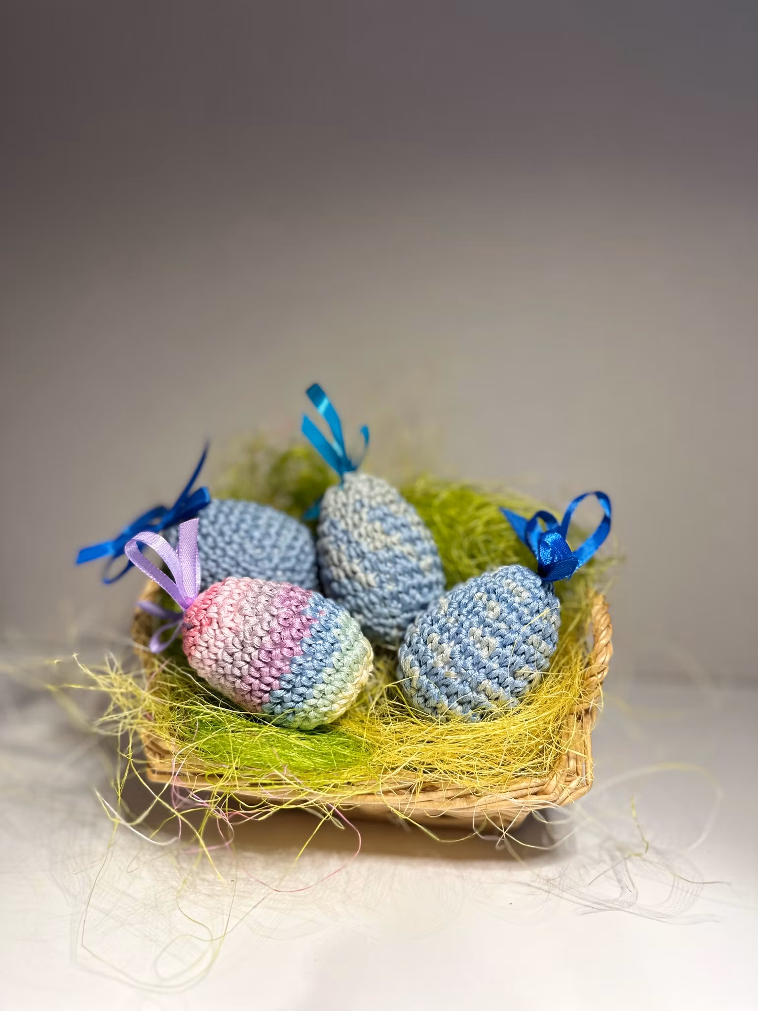 Påskägg! Virkade med 100% bomull i alla färger och mönster, kan hängas i grenar och fönster eller läggas på bordet för dekoration.